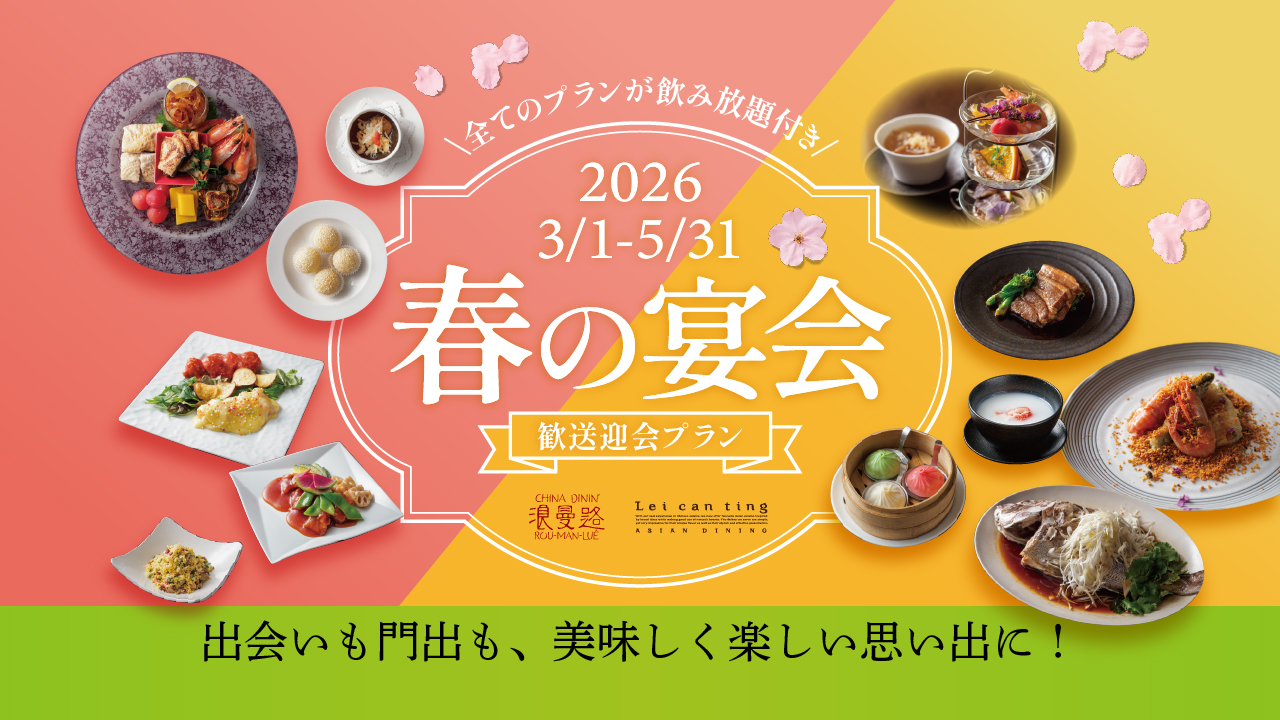 日頃より、RE・LIFEグループレストランをご利用いただき、誠にありがとうございます。 「2026歓送迎会プラン」の予約受付中です。 春の香りとともに、新たな出会いと旅立ちを祝うひとときを 飲み放題付きコースと共にお過ごしください。 幹事様に嬉しい『プロジェクター・スクリーン貸出』や バスでの『無料送迎』(※10名様以上・ご利用額4万円以上・4日前までのご予約)も 受け付けておりますので、お気軽に店舗スタッフにご相談ください。 =========================================== <2026歓送迎会プラン> 【開催期間】2026年3月1日(日)〜5月31日(日)まで =========================================== 「チャイナダイニン 浪曼路(ローマンルゥ)」 ■歓送迎会プラン 飲み放題付き 「セレクトコース」 お好きな料理をお選びいただくプリフィックスコース。 スタンダードは40品の中から、 プレミアムは50品の中からお選びいただけます。 スタンダード【 6品コース】 お一人様 税込5,500円(4名様〜) スタンダード【7品コース】 お一人様 税込6,000円(4名様〜) プレミアム【6品コース】 お一人様 税込6,300円(4名様〜) プレミアム【7品コース】 お一人様 税込6,800円(4名様〜) ■歓送迎会プラン 飲み放題付き 「春爛漫コース」【全6品】 お一人様 税込6,800円(4名様〜) ■歓送迎会プラン 飲み放題付き 「春の味覚コース」【全7品】 お一人様 税込8,800円(4名様〜) =========================================== ご予約・メニューの詳細は下記のサイトをご覧ください。 浪曼路 公式サイト https://www.roumanlue.jp/ 浪曼路 ぐるなびサイト https://r.gnavi.co.jp/k262502/ 浪曼路 食べログサイト https://tabelog.com/osaka/A2706/A270601/27000968/ 浪曼路 一休サイト https://restaurant.ikyu.com/105541 浪曼路 ご予約・お問い合わせ Tel.06-6858-6223 ============================================== 「アジアンダイニング Lei can ting 箕面本店」 ■歓送迎会プラン 飲み放題付き「飲茶バイキング」 スタンダードコース【全56品】 お一人様 税込6,500円(4名様〜) プレミアムコース【全66品】 お一人様 税込7,500円(4名様〜) デラックスコース【全76品】 お一人様 税込8,500円(4名様〜) ■歓送迎会プラン 飲み放題付き『リーさんのおすすめコース』【全8品】 お一人様 税込6,500円(4名様〜) ■歓送迎会プラン 飲み放題付き『春の味覚コース』【全8品】 お一人様 税込7,500円(4名様〜) =========================================== ご予約・メニューの詳細は下記のサイトをご覧ください。 Lei can ting 箕面本店 公式サイト https://www.leicanting.jp/ Lei can ting 箕面本店 ぐるなびサイト https://r.gnavi.co.jp/k262501/ Lei can ting 箕面本店 食べログサイト https://tabelog.com/osaka/A2706/A270603/27006966/ Lei can ting 箕面本店 ご予約・お問い合わせ Tel.072-749-0037